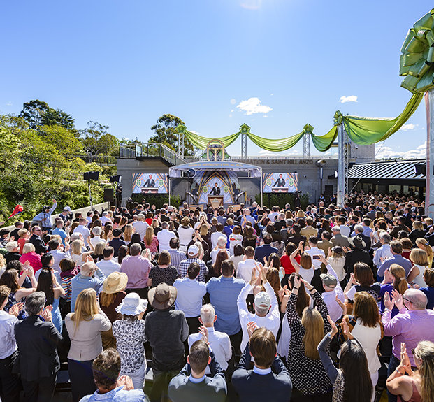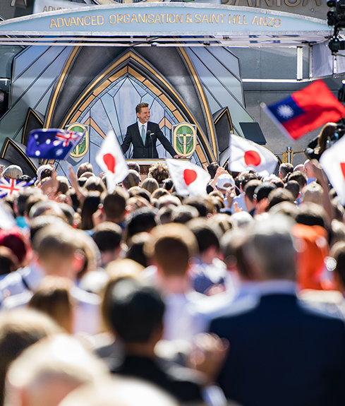 Mr. David Miscavige, Chairman of the Board Religious Technology Center, greeted the more than 2,500 Scientologists from throughout the region who were on hand to celebrate the opening of the new Ideal Advanced Organization for Australia, New Zealand and Asia.