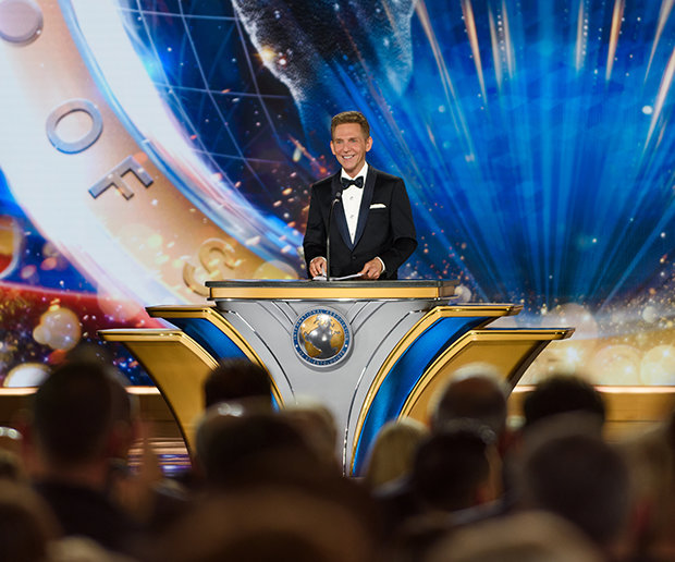 By Saturday evening, the Grand Marquee had stunningly transformed into an elegant ballroom for the annual IAS Patrons Ball. During the majestic black-tie dinner, Mr. Miscavige honored members who have elevated their support, advancing global initiatives across six continents. Uplifting the night in song, the evening featured Grammy Award–winner Mark Isham and an ensemble of performers.