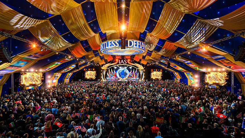Elegance and splendor frame the celebration as members of the IAS converge from six continents upon Saint Hill, the historic West Sussex home of Scientology Founder L. Ron Hubbard. Gliding along the red carpet, the crowd enters the Grand Marquee with joyful anticipation, flags from around the globe soaring high, hearts alight as all eyes turn toward the stage.